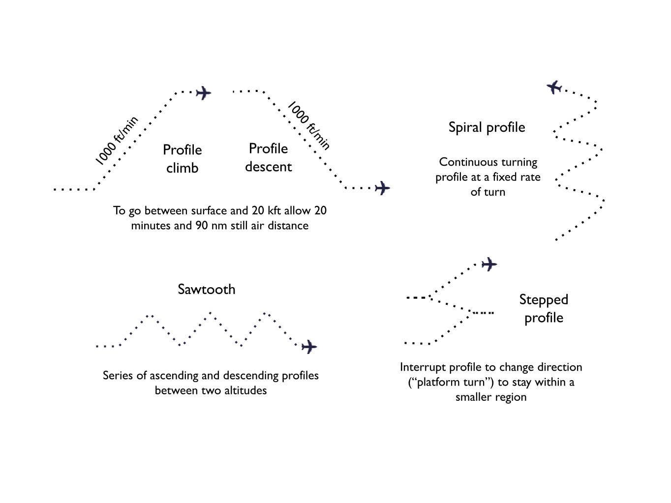 Example of manoeuvres used in flight planning, showing altitude changes.